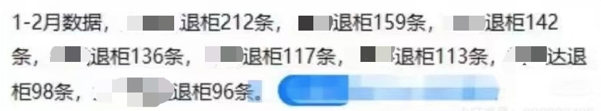 而在近两天,货代圈又传出一组数据,统计的是1-2月各大货代公司被退柜的数据,累计被退货柜数量超1000个。这组数据未经证实,但在美国5H查验风暴正盛的时候,在行业再次引发关注。